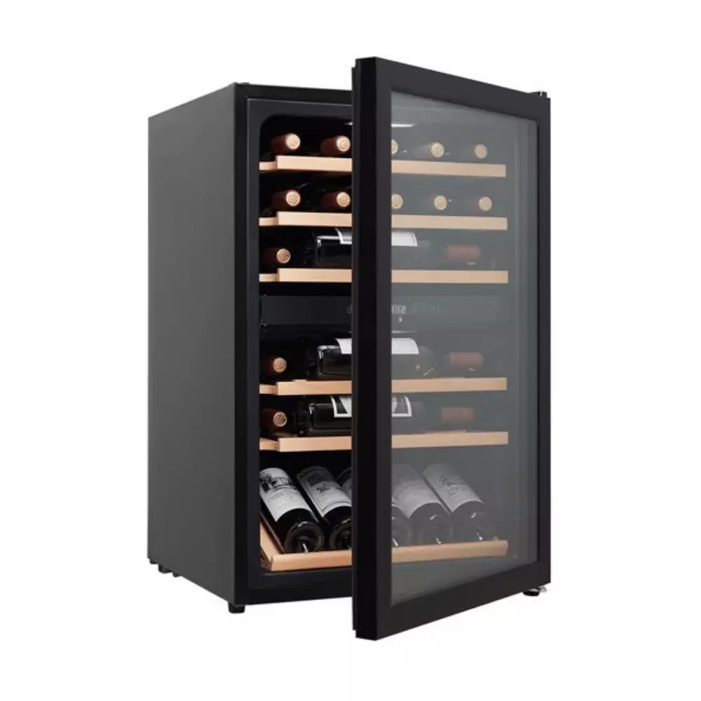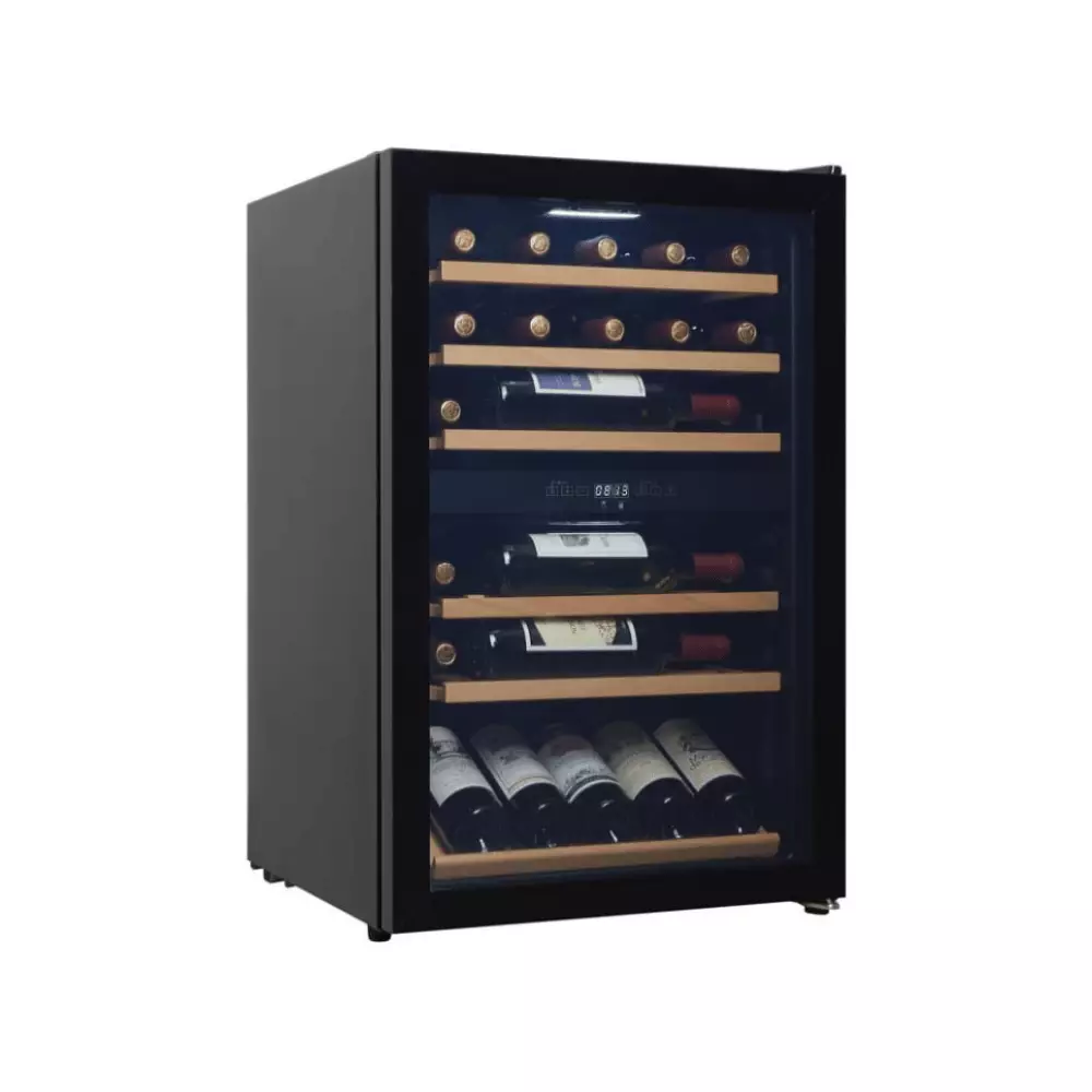 Samostojeća vinska vitrina CAVIN PCD37B je savršen izbor za ljubitelje vina koji žele visokokvalitetno, elegantno rešenje za čuvanje svoje kolekcije. Sa dve temperaturne zone (4–22 °C na gornjem delu i 4–22 °C na donjem delu), omogućava odvojeno skladištenje crvenih i belih vina u optimalnim uslovima. Vitrina može da primi do 37 boca (0,75 l Bordo) i opremljena je elegantnim crnim staklenim vratima sa UV zaštitom i belim LED osvetljenjem, što joj daje sofisticiran izgled i omogućava pregled sadržaja. Pouzdan sistem hlađenja sa kompresorom obezbeđuje stabilnu temperaturu, tihi rad i dug vek trajanja.2. Zašto odabrati ovaj model