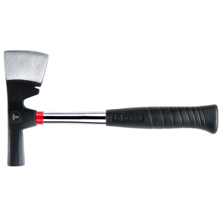 - Višenamenska sekira se sastoji od glave sekire (izrađenu od kaljenog čelika u skladu s DIN 5108) koja je postavljena na metalnu dršku. Gumeno presvučena ručka ergonomskog oblika odlično leži u ruci.
