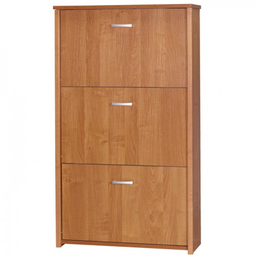 Vertikalni cipelarnik od ukrasnog furnira sa tri odeljka za cipele.