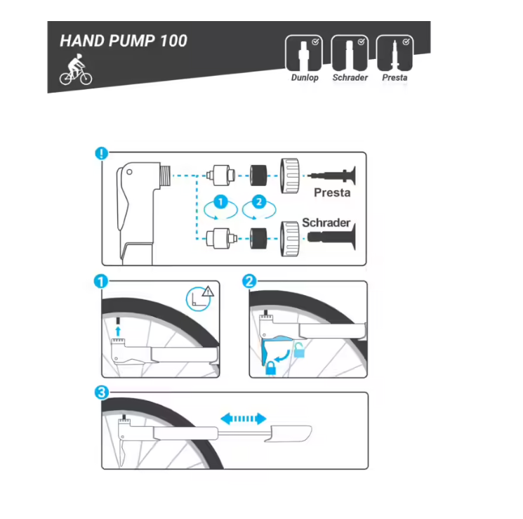 - Prikladna je za sve tipove ventila (Presta, Schrader, Dunlop).