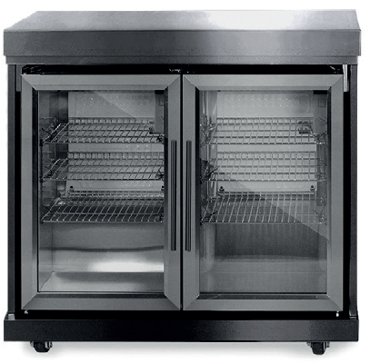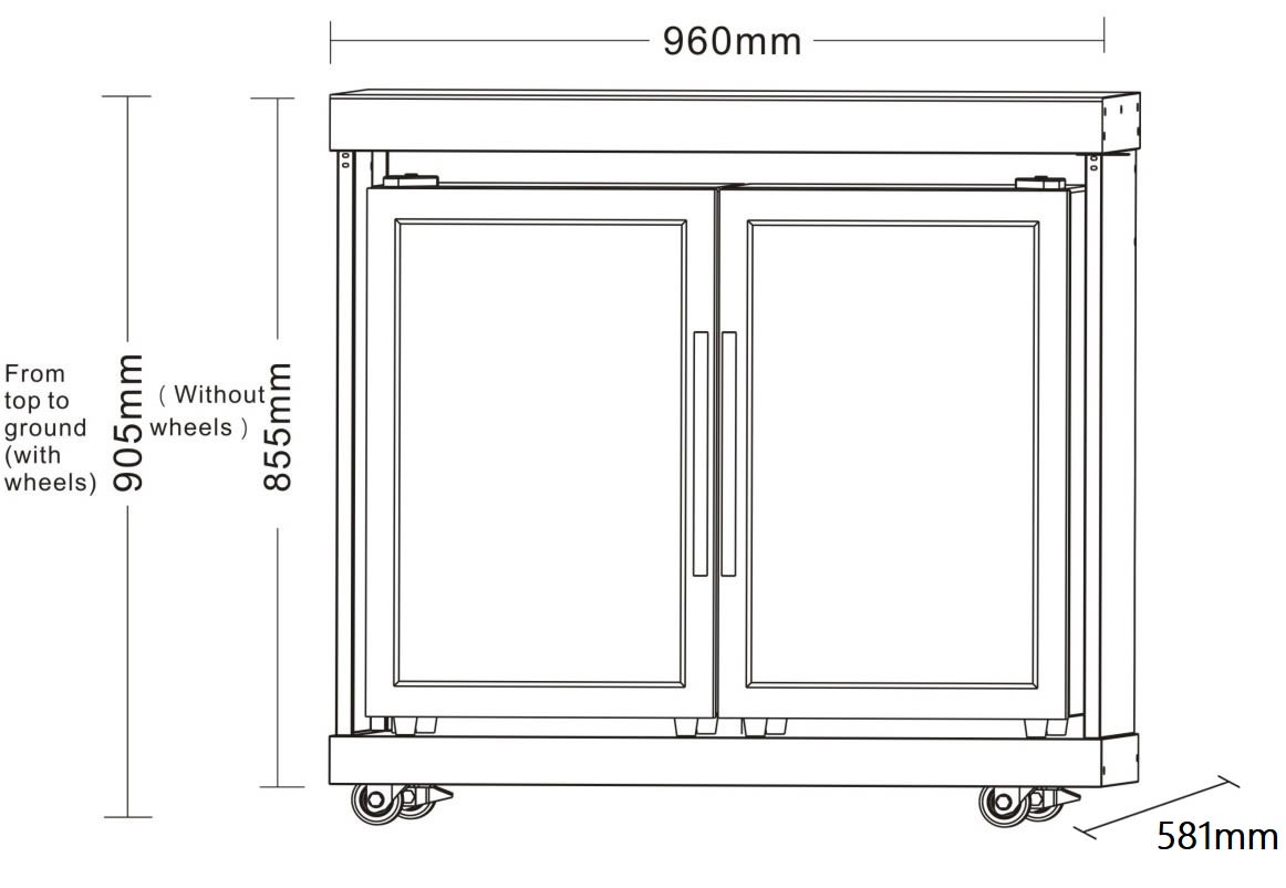Crni inox samostojeći frižider 7648 modul frižidera sa dvostrukim vratima, elegantnog, suvremenog dizajna sa završnom obradom u boji crnog antracita. Frižider dvostruke veličine u kojem se sastojci za obroke i pića mogu držati hladnima i pri ruci dok pečete roštilj. Ima prostrani kapacitet od 126 litara, 2 vrata, 6 velikih polica od nerđajućeg čelika, kompresorsko hlađenje i može hladiti na 3 °C. Njegova unutrašnja LED rasveta doprinosi ambijentu spoljnog prostora nakon zalaska sunca. Savršeno za ljetne zabave kod roštilja!