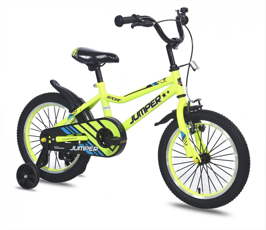 Dečiji bicikl Jumper 16 žuti 650127 je bicikl za dečake uzrasta između 5 i 8 godina. Prečnik točka bicikle Jumper iznosi 16 inča, odnosno 305mm. Dečiji bicikl Jumper 16 žuti 650127 je opremljen pomoćnim točkovima, koji pomažu detetu pri održavanju ravnoteže dok savladavaju vožnju bicikle. Pomoćni točkovi se mogu skinuti kada dete savlada vožnju. Dečiji bicikl Jumper 16 žuti 650127 ima podesivo sedište i upravljač, prednje V kočnice i zadnju kontru. Ram bicikla je obojen upadljivom žutom bojom.