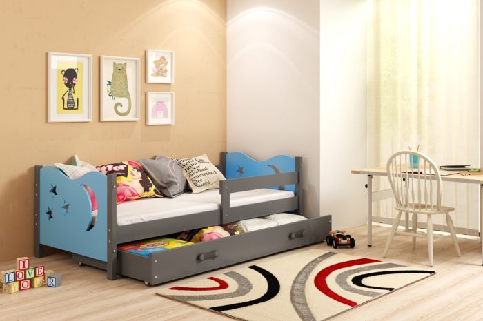 Dečiji krevet Elegant Graphite plavi 160x80 cm sa fiokom i dušekom.
