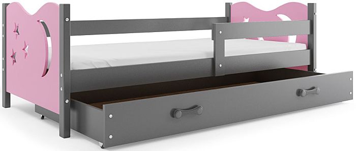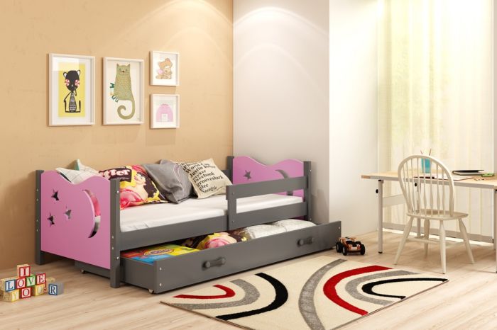 Dečiji krevet Elegant Graphite roze 160x80 cm sa fiokom i dušekom.
