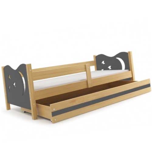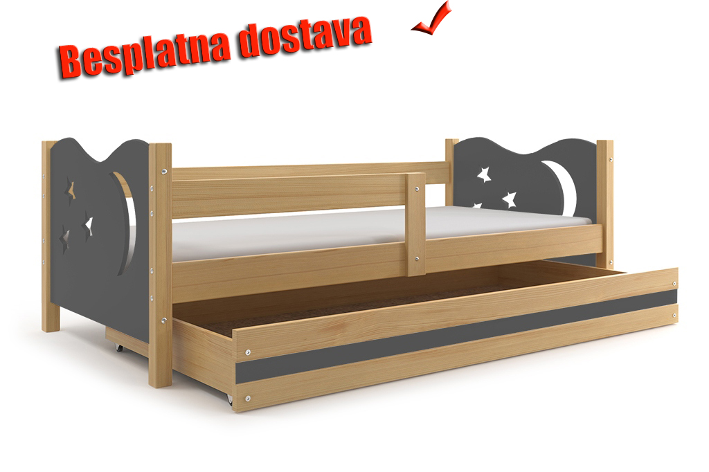 Dečiji krevet Elegant Pine sivi 160x80 cm sa fiokom i dušekom.