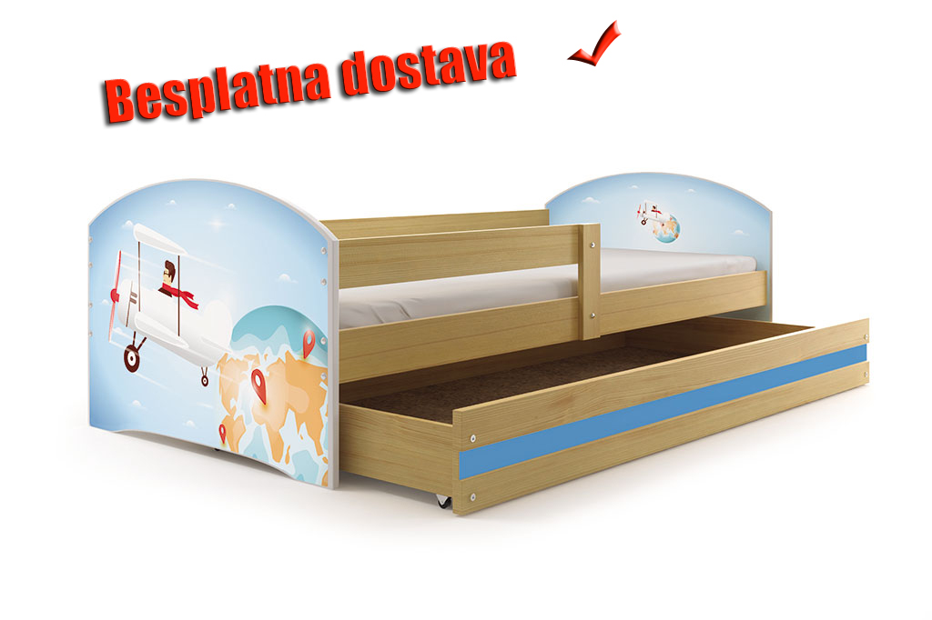 Dečiji krevet Lookie Pine 160x80 cm sa dušekom dezen 01.