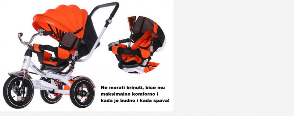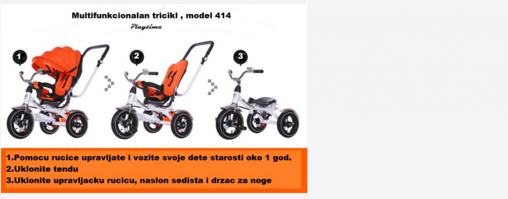 - Kako dete raste, tako ovaj “XL” tricikl prilagođavate uzrasnom dobu malog korisnika.Praktično, možete ga koristiti više godina.Vremenom, uklanjate delove tricikla (mekano sedište, držač za noge ) koji su tu da malom detetu pruže maksimalnu sigurnost i udobnost