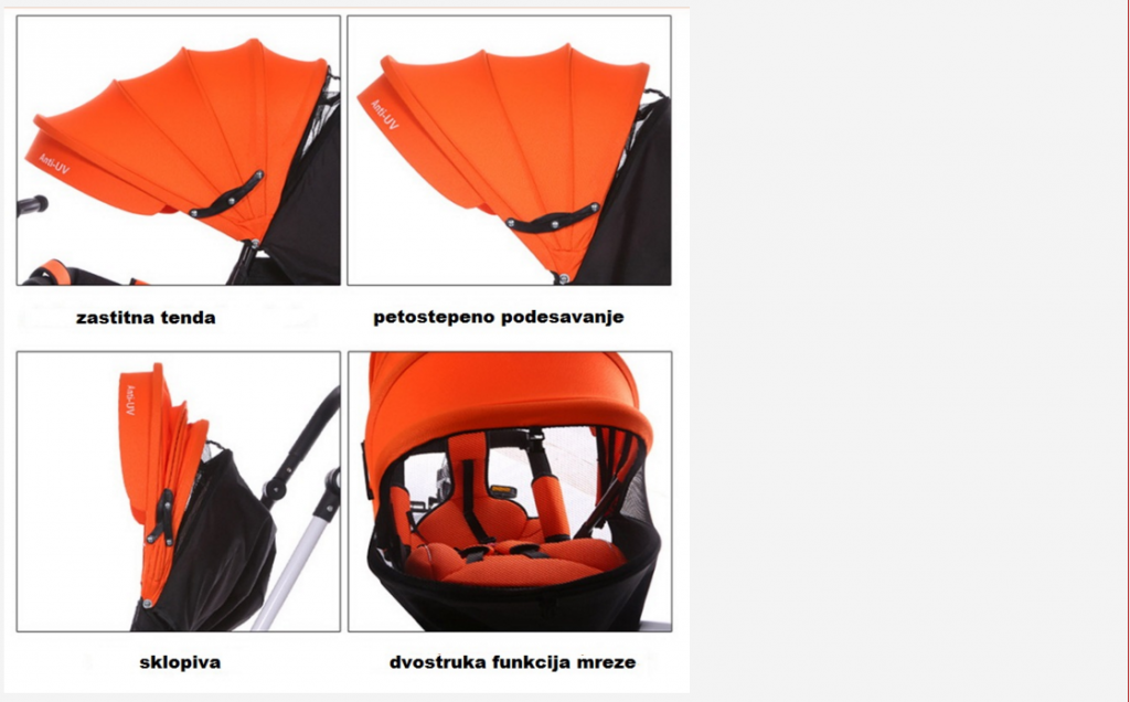 - Zaštitna tenda sa višestepenim podešavanjem i posebnom UV- zaštitom od sunca: