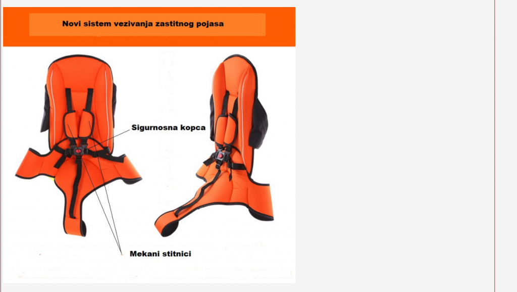 - Zaštitni pojas sa petostepenom kopčom obezbeđuje sigurnost pre svega.Na vertikalnim kaiševima imamo ojačanje od sunđerastog materijala u cilju zaštite nežne dečije kože