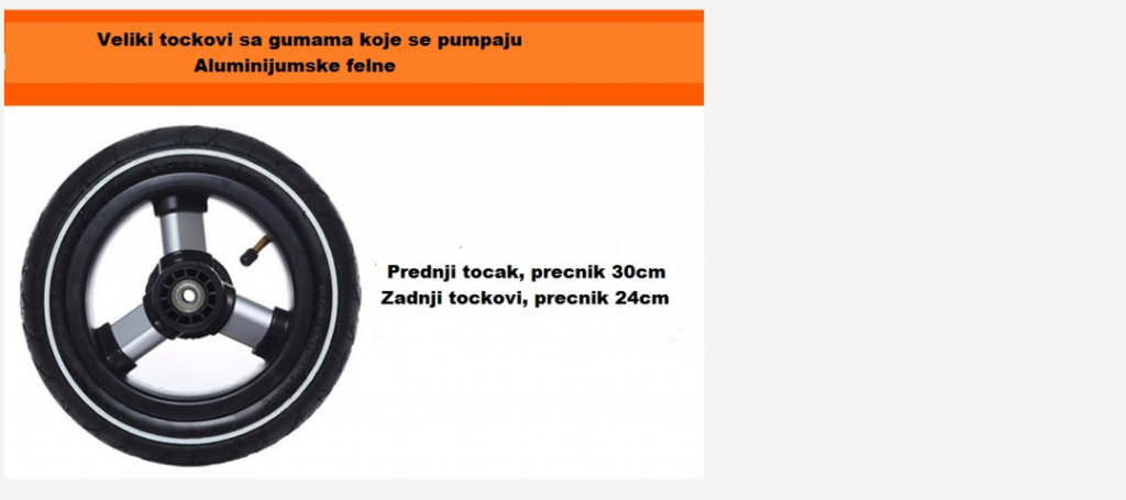 - XL-točkovi sa gumama na naduvavanje su prečnika 30cm i 24cm, alu-felne na točkovima