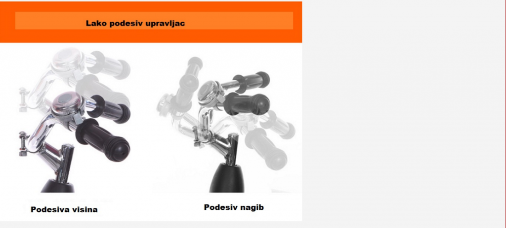 - Fleksibilni dvostruko podesiv upravljač na triciklu možete postaviti u skladu sa konstitucijom deteta: