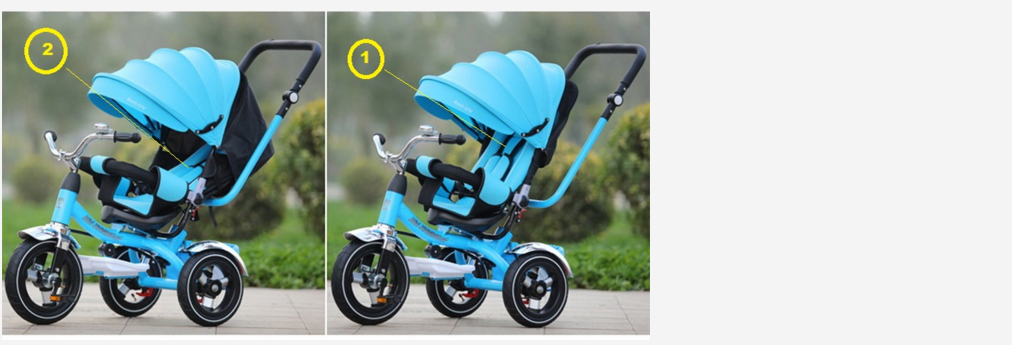 - Naslon sedišta je sa višestepenim podešavanjem položaja što omogučava osnovnu dvostruku funkciju tricikla: