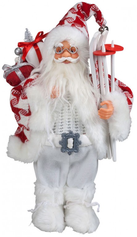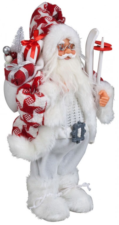 Atraktivna novogodišnja dekoracija. Deda Mraz sa skijama i džakom sa poklonima.