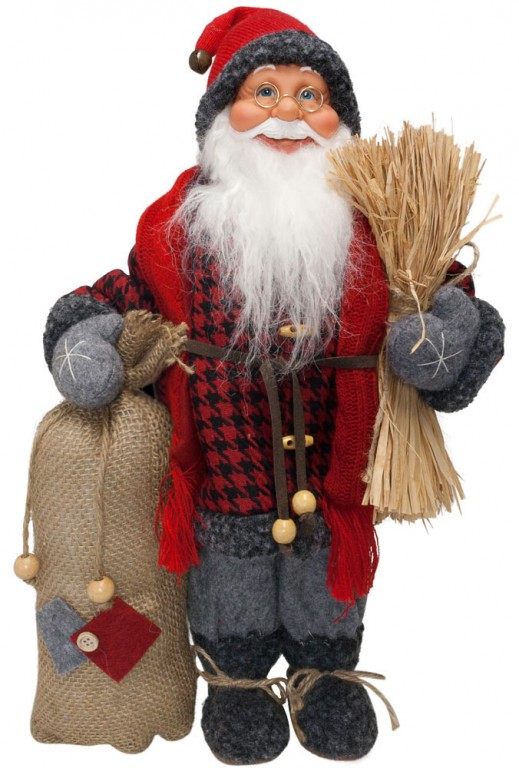 Prelepa Božićna i novogodišnja dekoracija. Deda Mraz sa džakom i poklonima i slamom.