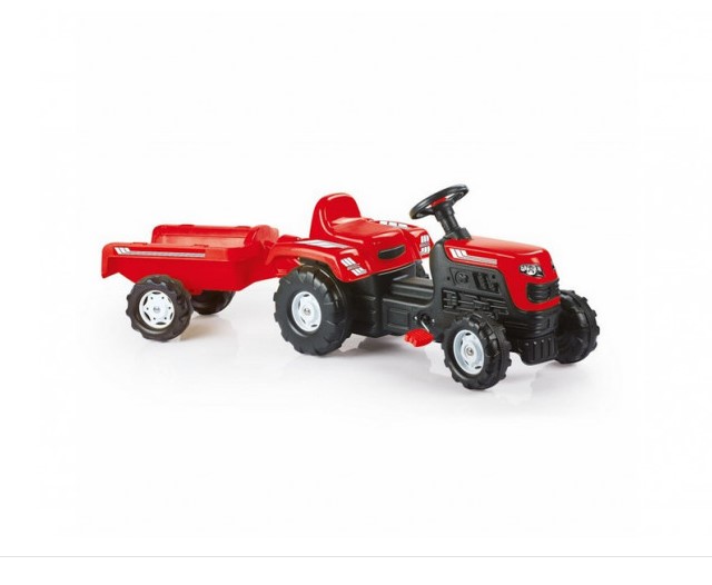 Dolu traktor na pedale sa prikolicom crveni 081469