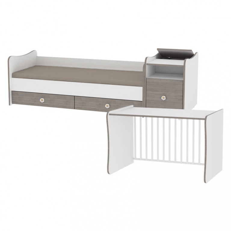Lorelli Bertoni Drveni krevetac Trend Plus transformiše se u krevet za tinejdžera, pisaći sto i ormarić. U cenu je uračunat dušek.