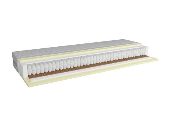 - Ispuna: 30mm memorijska pena 50kg/m³ + 20mm polieterska pena 23kg/m³ + propeks mreža // kokosovo vlakno 1400g/m² + 20mm polieterska pena 23kg/m³ + 30mm memorijska pena 50kg/m³