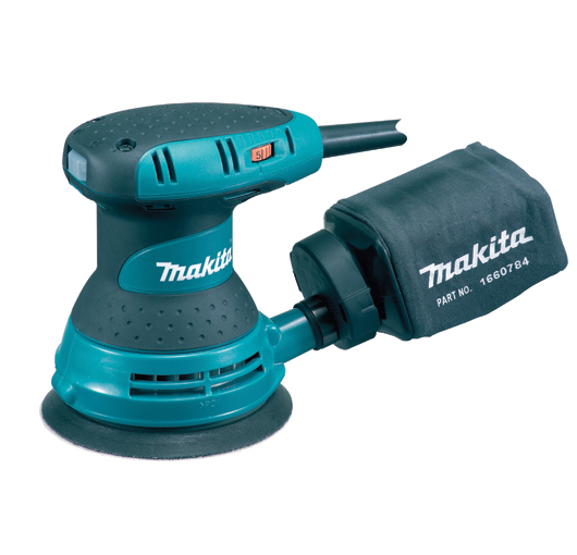 Ležajni deo brusilice ima povećanu trajnost zbog većeg kugličnog ležaja. Snažan motor za teške radove. Kočnica podložnog jastučića brzo zaustavlja motor posle isključivanja prekidača. Ergonomski oblikovani rukohvat brusilice. Ugrađena jedinica za odvođenje prašine za povezivanje na cev za odvod prašine ili Makita usisivača. Prekidač prekriven gumom sprečava upadanje prašine. Kočnica jastučića.