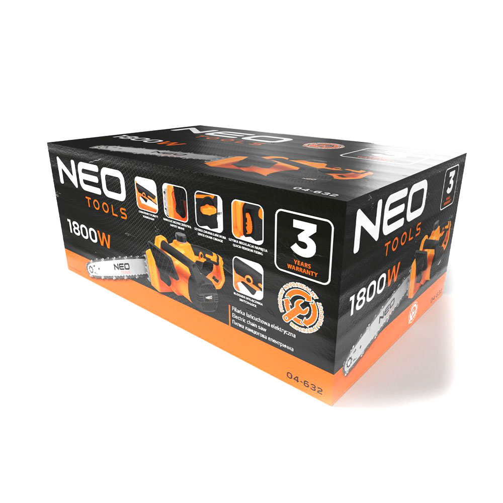 Električna lančana testera NEO TOOLS 04-632 snage 1800 W namenjena je za sečenje, orezivanje i pripremu drva za ogrev. Zahvaljujući snažnom motoru i vodilici dužine 405 mm (16"), predstavlja pouzdan alat kako za kućnu, tako i za profesionalnu upotrebu.