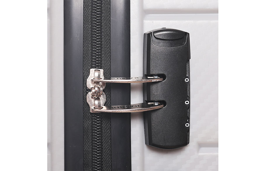 - Za sigurnost prtljaga ugrađena je bravica sa kombinacijom za zaključavanje. Ona se sastoji od 3 mala točka sa brojevima. Fabrički je postavljena šifra "000" i ta šifra se može resetovati pritiskom na dugme. Nakon toga se postavlja željena kombinacija brojeva, pusti se pritisnuto dugme i zapamćena je nova šifra.