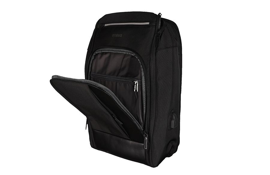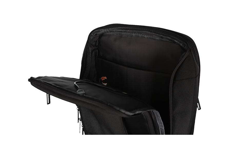 Ranac je sa specifičnim odeljkom za laptop do 15,6″ (35,5x26x3cm) kao i sa pregradom za tablet i unutrašnjim džepom za nošenje dokumenata. Veliki glavni džep sa unutrašnjim organizatorom za čuvanje 2 olovke, mobilnog telefona i manjih sitnica, uz poseban veliki džep za tablet i integrisan USB port. U prednja 3 džepa možete smestiti sve Vaše sitnice da Vam uvek budu na dohvat ruke. Bočni džep je idealan da imate flašicu vode uvek uz Vas. Ojačana leđa sa širokim i ergonomskim kaiševima koje se savršeno prilagođavaju leđima kako bi pružile najveću udobnost. Mogućnost prilagođavanja koferu.