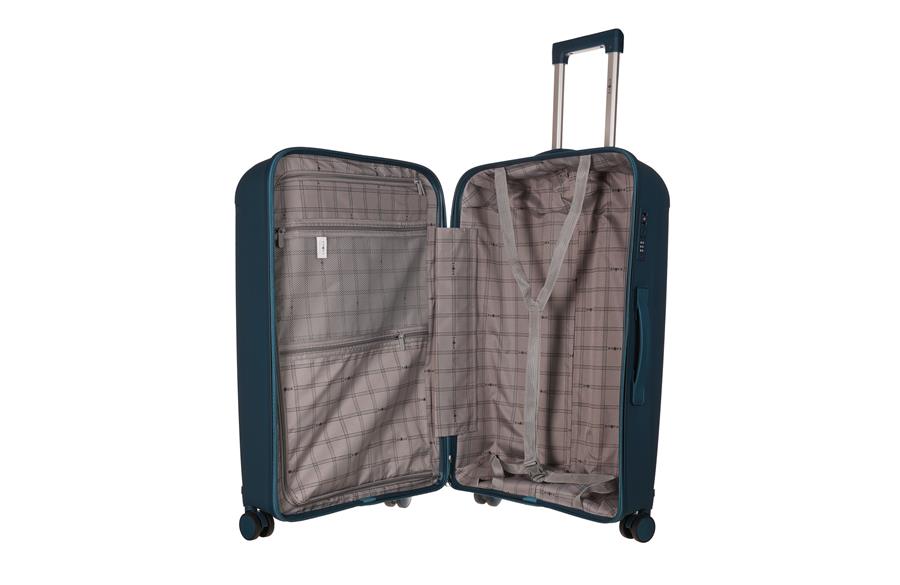 Koferi kombinuju moderan dizajn i vrhunsku funkcionalnost, izrađeni su od izuzetno izdržljivog, ali laganog polipropilena koji pruža pouzdanu zaštitu i otpornost na udarce tokom putovanja. Zahvaljujući ojačanoj aluminijumskoj teleskopskoj ručki, upravljanje koferom je stabilno i jednostavno, dok četiri dupla točkića sa rotacijom od 360° omogućavaju lako i glatko kretanje u svim pravcima. Unutrašnjost je obložena mekom postavom u sivoj boji, koja unosi dozu elegancije, štiti sadržaj i olakšava organizaciju. Dodatni nivo sigurnosti obezbeđuju glavni rajsferšlus sa zaštitom od krađe i brava, idealna za sigurnu kontrolu prtljaga na međunarodnim aerodromima.