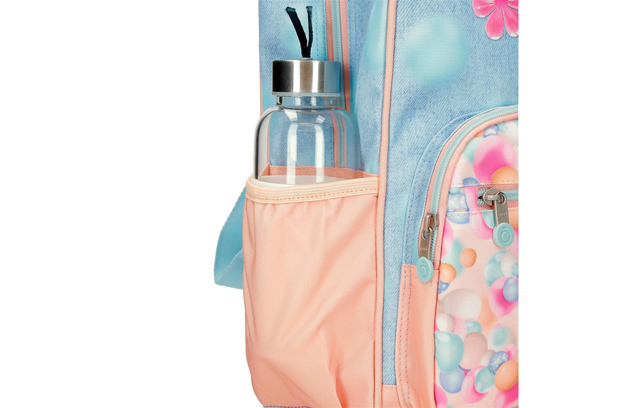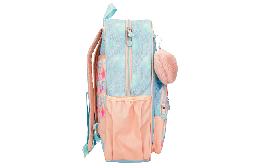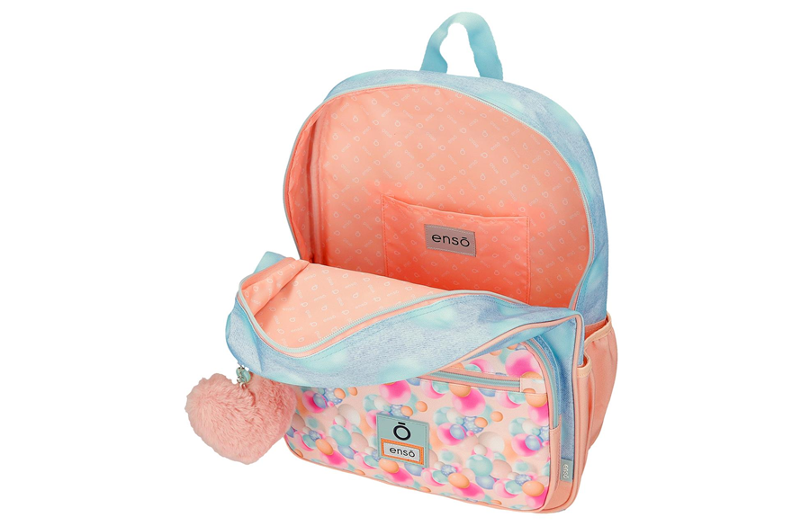 Enso BUBBLES ranac za školu je idealan izbor za devojčice koje vole boje, mekoću i razigrane detalje. Napravljen je od kvalitetnog poliestera koji je lagan, izdržljiv i jednostavan za održavanje. Nijanse plave, roze i bledo žute stvaraju vedar, nežan i moderan izgled — savršen za svaki školski dan.