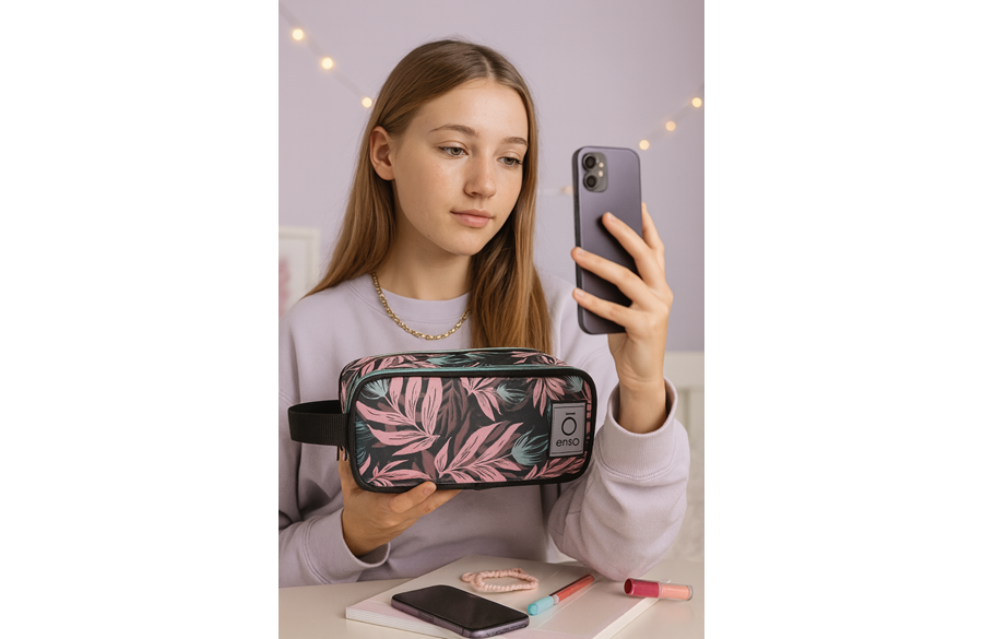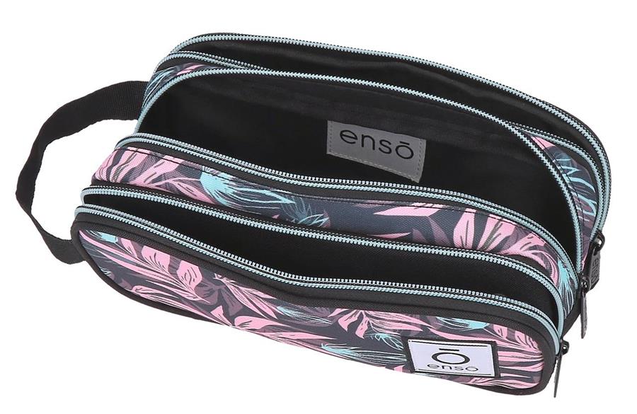 ENSO FLEUR ženski neseser sa 3 pregrade je praktičan, elegantan i pametno organizovan dodatak za svakodnevnu upotrebu i putovanja. Nežan pastelni FLEUR dezen daje mu moderan, ženstven izgled, dok promišljena konstrukcija omogućava lako pakovanje i brz pristup svim potrepštinama. Kompaktan spolja, pregledan iznutra — savršen za kozmetiku, toaletni pribor ili sitnice koje želite uvek uredno složene.