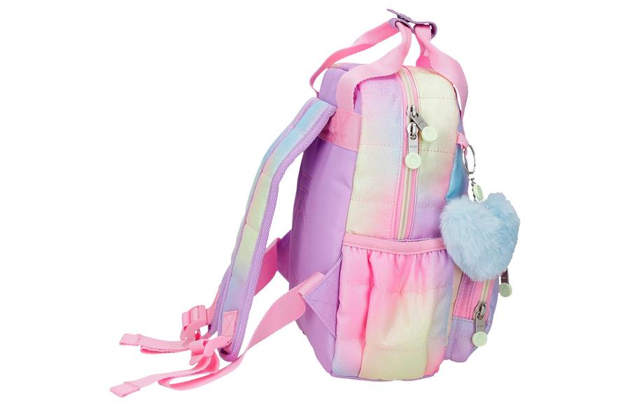 Veliko srce na prednjem delu i simpatični pastelni tonovi daju rancu prepoznatljiv, razigran karakter. Mekani privesak u obliku srca dodaje dozu nežnosti i čini ranac još posebnijim. Moderan, veseo i savršeno uklopiv sa ostatkom kolekcije. Materijal je otporan na svakodnevno korišćenje i lako se čisti, što znači manje brige za roditelje, a više slobode za decu. Stabilan, funkcionalan i spreman da prati svaku malu rutinu.