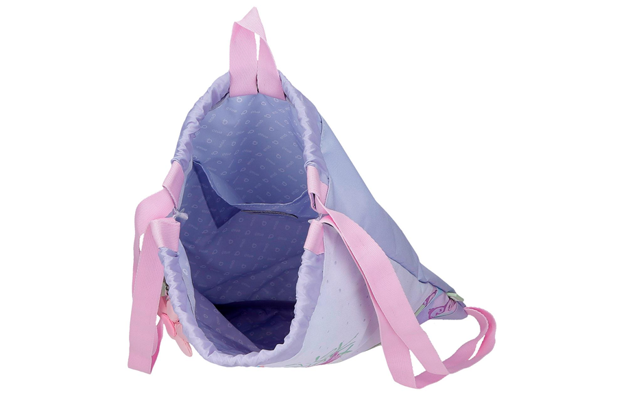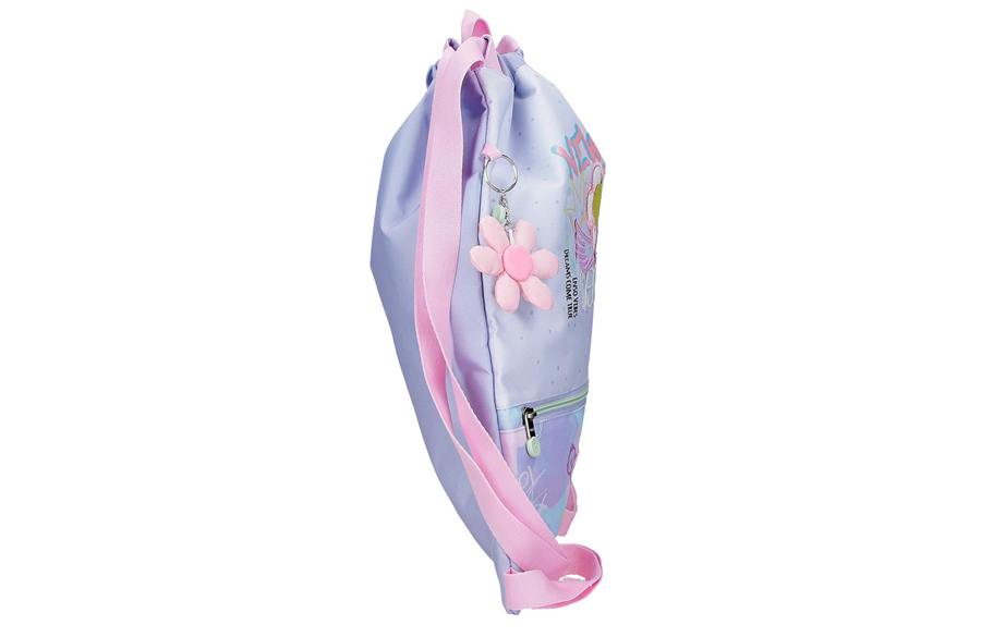 Pastelne nijanse ljubičaste i roze, zajedno sa cvetnim motivom, čine ovu torbu pravim simbolom dobrog raspoloženja i kreativnosti. Dekorativni privezak u obliku cveta unosi dodatnu dozu šarma i ličnog stila.