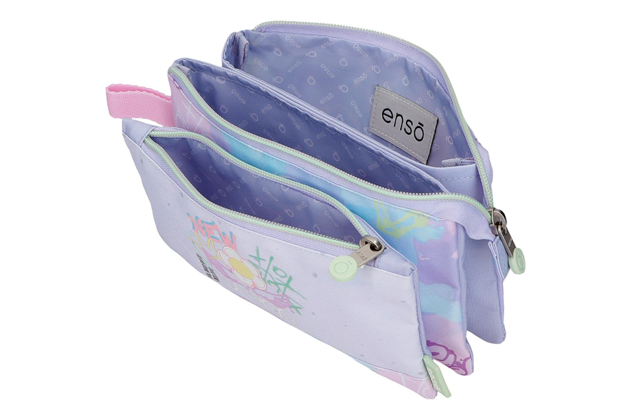 Enso NEW VIBES prazna pernica sa 3 pregrade je idealna za devojčice koje žele da njihov školski pribor bude uredno raspoređen i lako dostupan. Kombinuje funkcionalnost, kvalitet i prepoznatljiv Enso pastelni dizajn, pružajući maksimalnu preglednost i organizaciju tokom celog školskog dana. Izrađena je od izdržljivog poliestera, lagana je, praktična i jednostavna za održavanje, što je čini pouzdanim pratiocem u školi i kod kuće.