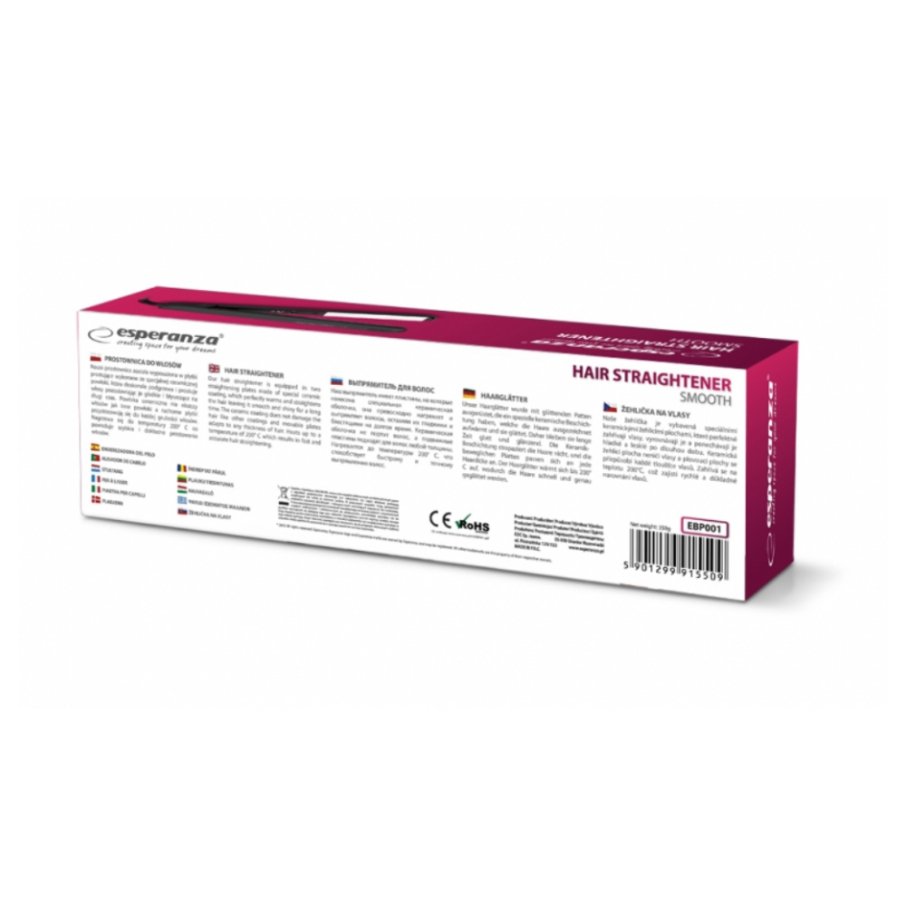 - Opremljena je sa dve ploče za ispravljanje od posebnog keramičkog sloja, koje savršeno greju i ispravljaju kosu čineći je glatkom i sjajnom duže vreme