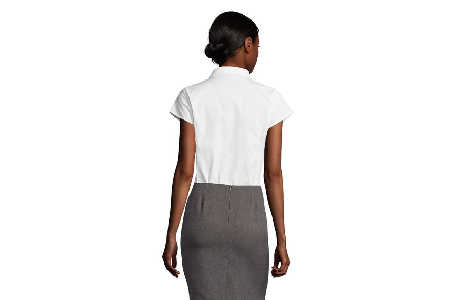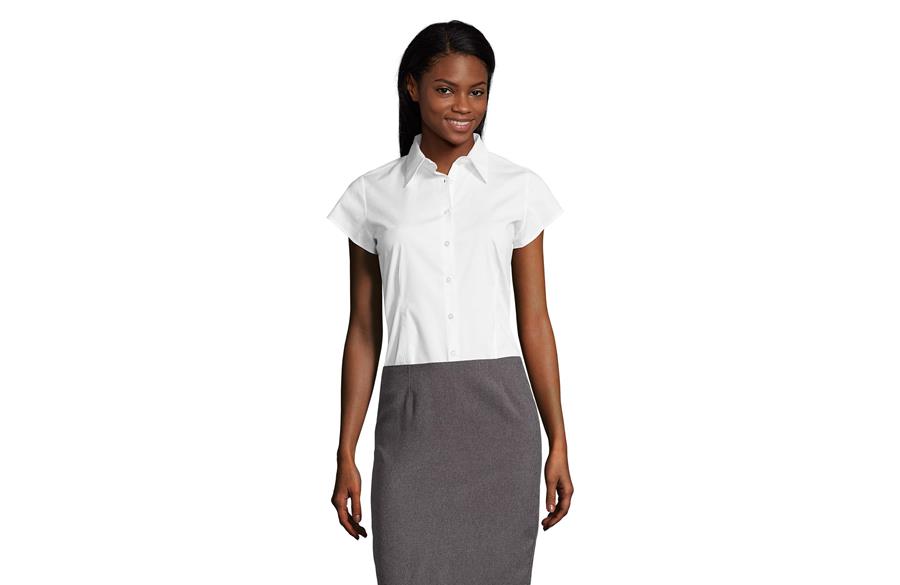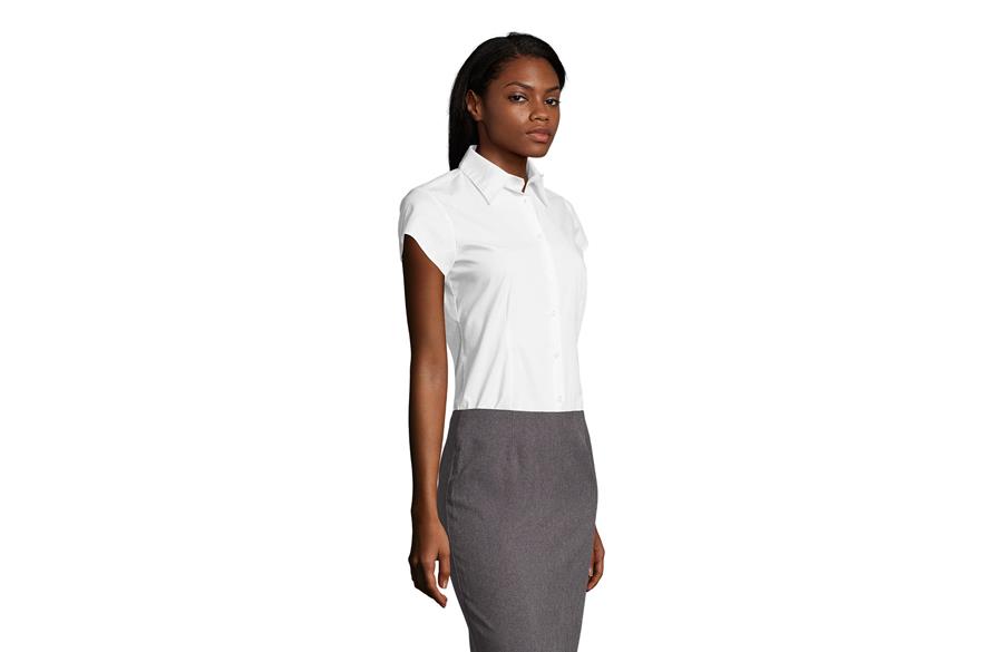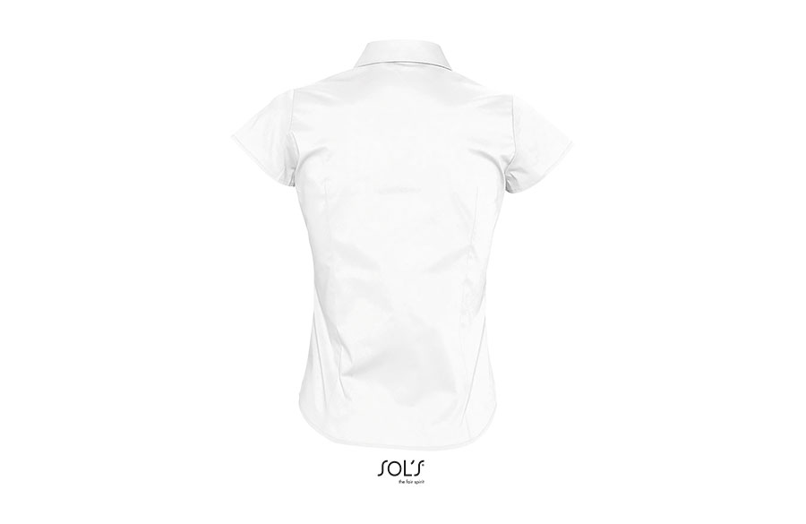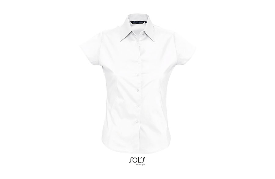 SOL'S EXCESS je ženska košulja kratkih rukava koja kombinuje moderan stil i praktičnost. Izrađena od POPLIN STRETCH materijala od 140 g/m² (97% pamuk i 3% elastin), pruža udobnost i slobodu pokreta zahvaljujući elastičnom sastavu. Trendy & feminine kroj koji prati liniju tela naglašava eleganciju, dok polu-otvorena kragna sa jednim dugmetom daje sofisticiran i uredan izgled. Idealna je za poslovne prilike, uniforme i promotivne aktivnosti tokom toplijih dana.