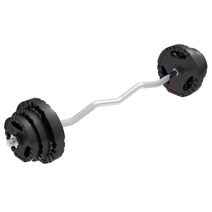 EZ-Set tegova plastični 25 kg Naš EZ-Set je idealan saputnik za sve vežbe jačanja ruku, leđa i gornjeg dela tela. Specijalno zakrivljen oblik EZ šipke osmišljen je tako da trening bude posebno prijatan za zglobove i ligamente. Zahvaljujući tome, smanjuje se rizik od grčeva i povreda, a tvoje vežbanje postaje znatno efikasnije. Sadržaj seta: 2 × ploče od 1,25 kg (prečnik 18,5 – 19,1 cm, širina 3,4 cm) 2 × ploče od 2,5 kg (prečnik 22,5 – 23 cm, širina 4,2 cm) 2 × ploče od 5 kg (prečnik 27 – 28,2 cm, širina 5 cm) 1 × EZ šipka 120 cm (težina 8 kg, dužina rukohvata po strani 18 cm) 2 × zvezdasta osigurača za sigurno pričvršćivanje tegova Dodatne informacije: Ploče u setu izrađene su od visoko zbijene cementne smeše, obložene izuzetno čvrstom plastičnom presvlakom. Na ovaj način čuvaš svoj pod čak i tokom intenzivnog treninga. Praktični otvori na pločama olakšavaju zamenu težina, a mogu se koristiti i za dodatne vežbe hvata i funkcionalnog treninga. Ukoliko ti priložene ploče nisu dovoljne, ovaj set je kompatibilan sa svim standardnim pločama od 30/31 mm. Za još efektivniji trening preporučujemo kombinaciju EZ-Seta sa klupom za vežbanje ili curl klupom.