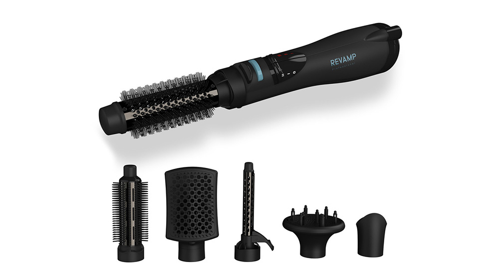 - Dodajte oblik i definiciju dok sušite kosu sa Revamp Progloss Airstyle. Snažno sušenje i oblikovanje su kombinovani sa motorom od 1200 W i 6 izmenljivih dodataka za oblikovanje frizura. Tehnologija dvostrukog jonskog mlaza radi na ukroćivanju kovrdžanja i fleka za svilenkasto glatku završnicu, dok istovremeno povećava volumen u korenu. Pogodno za sve tipove kose sa podesivim podešavanjem toplote i brzine, uključujući postavku za hladan vazduh. Dodatno, natopljen Progloss super uljima za poboljšani sjaj. Bez obzira da li želite definisane kovrdže ili izgled velikog volumena, stajler vam može pomoći da oblikujete kosu bez napora.