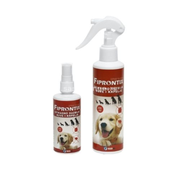 - FIPRONTIX® SPRAY for dogs se nanosi prskanjem iz proizvođačkog pakovanja: plastične bočice sa mehaničkom prskalicom.