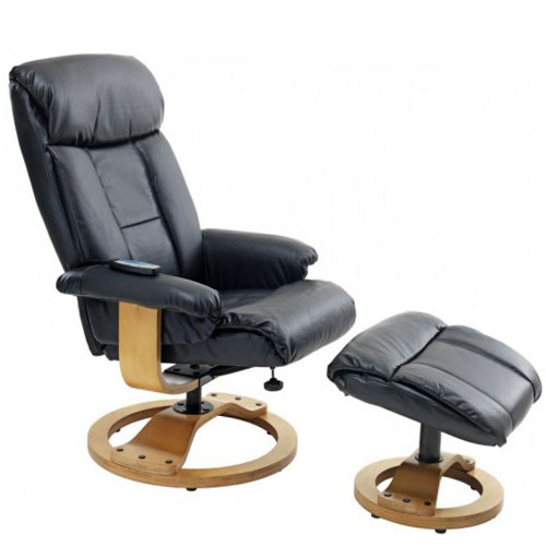 Udobna podesiva fotelja za masažu od veštačke kože, sa električnom masažnom funkcijom, rotirajućom bazom i nagibnim mehanizmom. Uz fotelju za masažu dolazi i tabure u istom stilu.