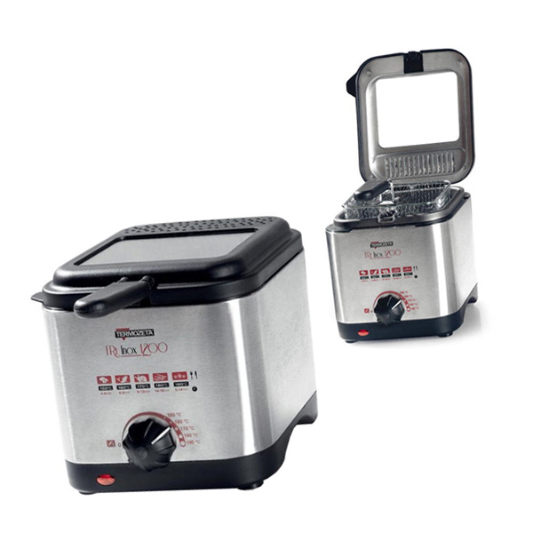 Električna fritezaTermozeta je idealan uređaj za prženje hrane u dubokom ulju. Savršena je za pripremu pomfrita, pohovane hrane ili ribljih štapića. Ima posudu na koju se ne lepi sadržaj i u koju može stati do 1.3 litra ulja.