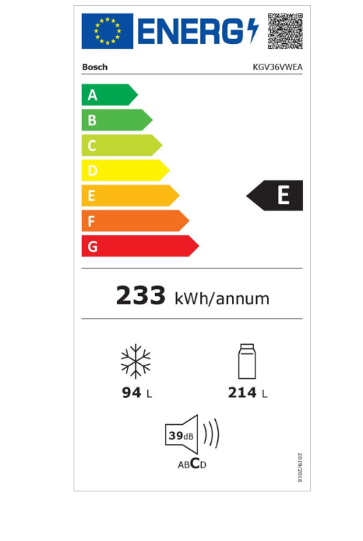 - Prosečna godišnja potrošnja energije u kilovat satima godišnje (kWh/a): 233 kWh/annum