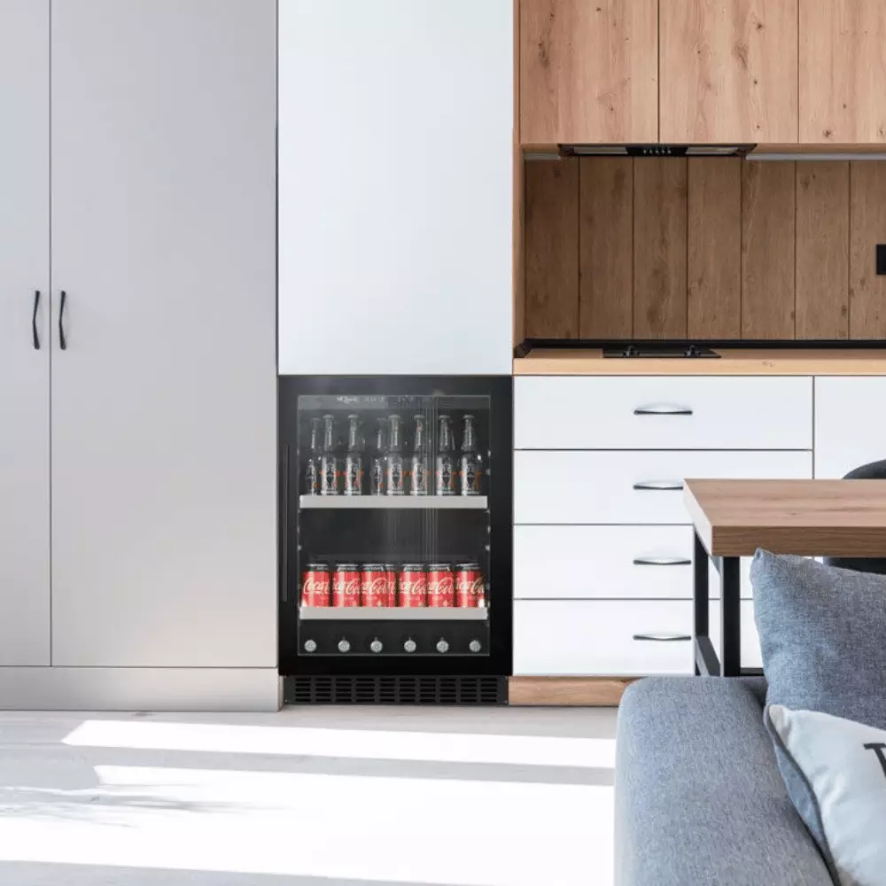 Podpultno ugradni frižider za pivo je kompaktno i elegantno rešenje za sve ljubitelje piva koji žele da njihova pića budu savršeno hladna i lako dostupna. Sa širinom od 60 cm i visinom vrata od 700 mm, savršeno se uklapa u standardne kuhinjske elemente, omogućavajući laku integraciju u moderne kuhinje, kućne barove ili zajedničke prostore. Model ovog podpultnog ugradnog frižidera za pivo ima crna staklena vrata sa UV zaštitom i antracitno-crni okvir koji štiti sadržaj od svetlosti, kao i LED osvetljenje koje obezbeđuje vidljivost i estetski prihvatljiv enterijer. Metalne police garantuju stabilnost i izdržljivost, istovremeno naglašavajući moderan karakter frižidera. Frižider omogućava podešavanje temperature između 2 i 12 °C, što je idealan opseg za različite vrste piva – od laganih, osvežavajućih lagera do punotelesnih, tamnih piva. Posebna karakteristika ovog modela je dvostruki kapacitet, jer može da smesti do 148 limenki ili 116 flaša piva, obezbeđujući potpunu fleksibilnost mQuvée BS60AB-700 kombinuje kompaktnost, funkcionalnost i eleganciju, čineći ga odličnim izborom za sve koji žele profesionalno hlađenje pića u modernom dizajnu.2. Zašto odabrati ovaj model