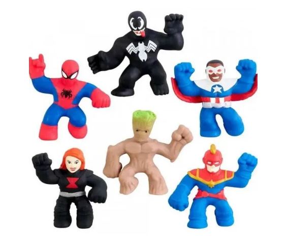 - Postoji 6 Goo Jit Zu Marvel heroja za prikupljanje! Neverovatni Spajdermen, Neverovatni Hulk, Kapetan Amerika-Sam Vilson, Kapetan Marvel, Crna udovica i nepobedivi Gvozdeni čovek.