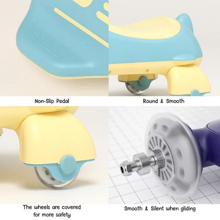 - Telo romobila je elegantno i ne steti kozu, pedale se ne klizu, tockovi su zasticeni za vise sigurnosti, takodje su glatki i tokom voznje necujni.