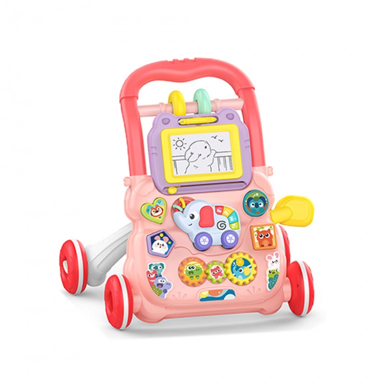 - Guralica za prohodavanje sa motivom plavog slona poseduje na sebi tablu za crtanje, koja stimuliše bebine kreativne sposobnosti - odvojivi klavir sa motivima slona koji emituje zvuk i svetlosne efekte, podstiče vizuelni/slušni razvoj bebe, pomaže bebi da prepozna različite oblike i nauči da ih pravilno uskladi. Poseduje zupčanike za rotiranje čime se podstiče fina motorika i flksibilnost prstiju. Guralica je stabilne konstrukcije: nizak centar gravitacije + stabilna četiri točka. Širok razmak koji pomaže bebi da pravilno hoda i sprečava pojavu O-nogu. Dimenzije: 40*32*40.5cm, uzrast: 12+