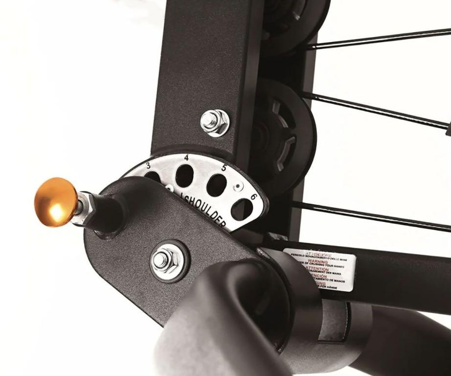- TOORX MSX 300 multigym je takođe opremljen dvostrukim slobodnim kablom sa podešavanjem ruke na 6 različitih nivoa, što vam omogućava da izvodite mnogo različitih vrsta vežbi.