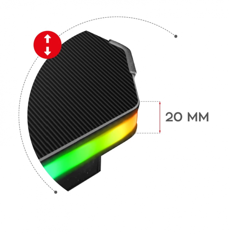 - RGB LED trake postavljene na ivicama ploče stola daju neverovatan karakter igranja stolu. Radni sto postavljen uz zid ili nameštaj uneće jedinstvenu atmosferu, jer će se svetlost reflektovati od okolnih predmeta i efikasno osvetljavati celu radnu stanicu.