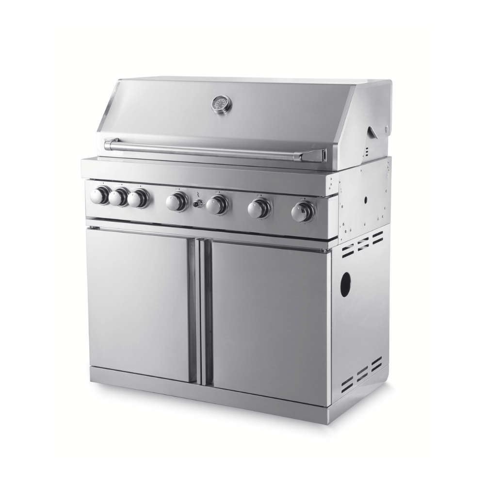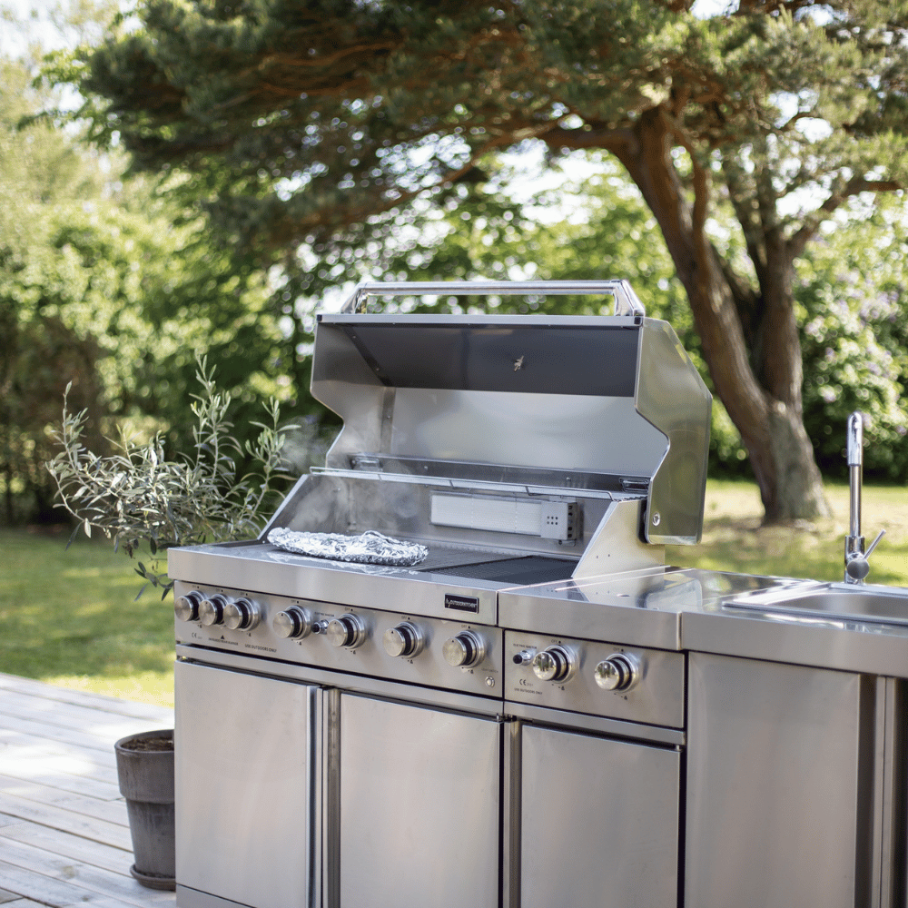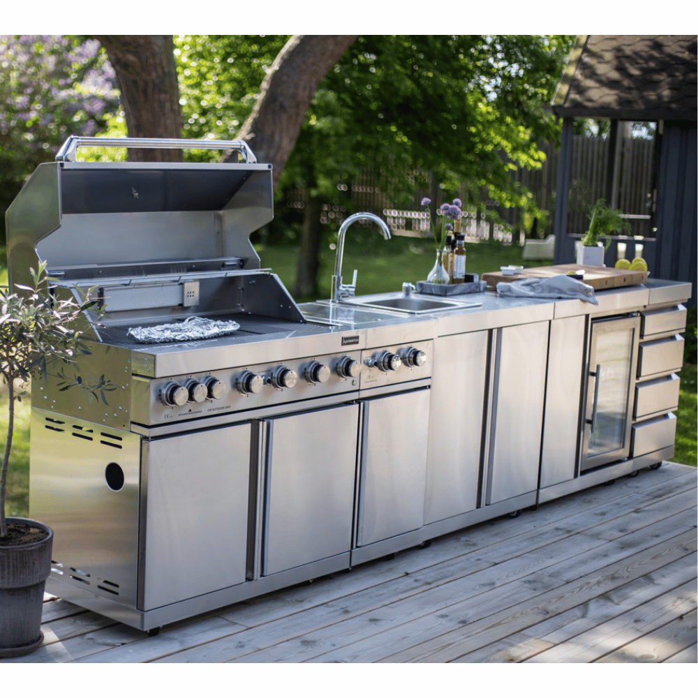 Inox plinski roštilj sa 6 gorionika 7635 i infracrvenim grejačem je praktični, samostojeći roštilj koji pruža niz fantastičnih kulinarskih mogućnosti. Ovaj jedinstveni i upečatljivi roštilj izrađen je od nerđajućeg čelika 304. Robusni hromirani upravljački dugmići sa LED osvetljenjem i unutrašnjem svetlom za roštilj za osvetljavanje vašeg prostora za kuvanje i unose dašak luksuza u kasnovečernje roštiljanje. Dodatna oprema roštilja uključuje 2 čvrste rešetke za kuvanje od 5 mm, rešetku za grejanje i roštilj koji podiže vaše roštilje na nove visine, sa sočnim odrescima, pečenom piletinom i ukusnim povrćem svaki dan! Plinski roštilj visokih performansi savršen je za postavljanje u vaš spoljni prostor ili bilo gdje u dvorištu. Velika površina roštilja dimenzija 97 x 46 cm. Sve komponente i oprema kao što su gorionici, regulator plamena i posuda za skupljanje masti izrađeni su od visokokvalitetnog nerđajućeg čelika. Dvostruki poklopac sa meračem temperature i ručkom od nerđajućeg čelika. Poklopac je izrađen od dva sloja nerđajućeg čelika koji između sebe imaju ventilacioni otvor, koji pomaže da izolujete roštilj i zadržati toplotu unutra, dok spolja nije previše vruće na dodir pa nema opasnosti od opekotina. Dva ormarića ispod roštilja pružaju dovoljno prostora za odlaganje kuhinjskog pribora i plinske boce. Optimizujte svoje iskustvo kuvanja dodavanjem zasebnog bočnog gorionika na svoj roštilj. Naše spoljne kuhinje odišu:- skandinavskim dizajnom