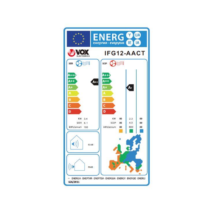 - Energetska klasa A+ (grejanje), A++ (hlađenje)