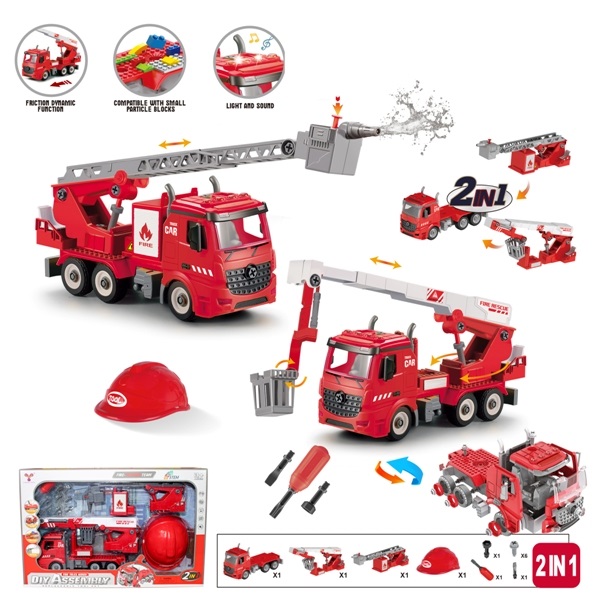- Kamion Vatrogasac Sastavi-rastavi na baterije sa zvučnim i svetlosnim efektima i rezervoarom za vodu