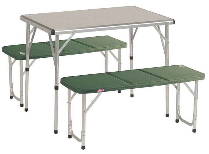 Idealan set za kampovanje, sadrži sto i 2 klupe što pruža dovoljno mesta za 4 osobe. Klupe se nakon sklapanja ukllapaju u sto i tako zauzimaju manje mesta. Od aluminijuma, izuzetno lagan a opet postojan i pouzdan