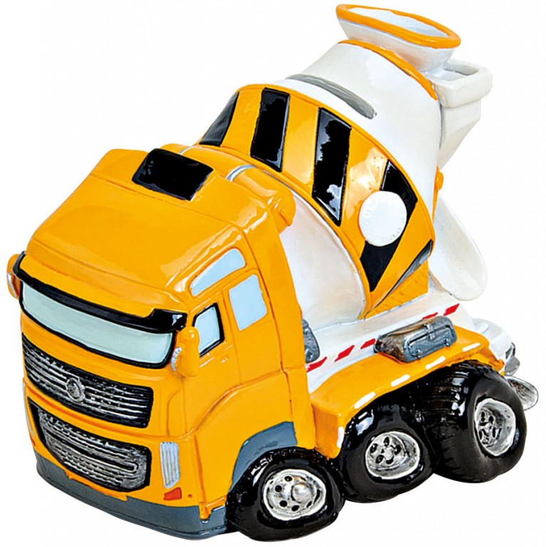 - Polirezin kasica u obliku kamiona mešalice. Dimenzije : 12cm x 11cm i visina 16cm